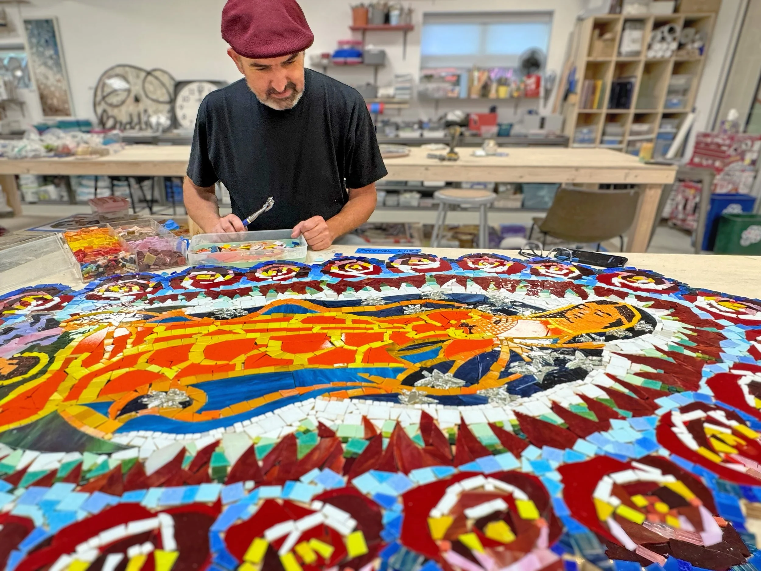 Now, starting with Mosaic Fest 2025, we bring artists nationally and internationally to the workshop to learn the medium or refine their craft.